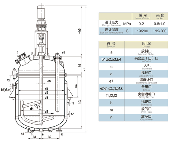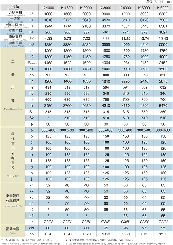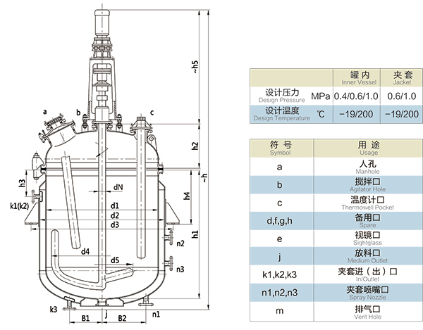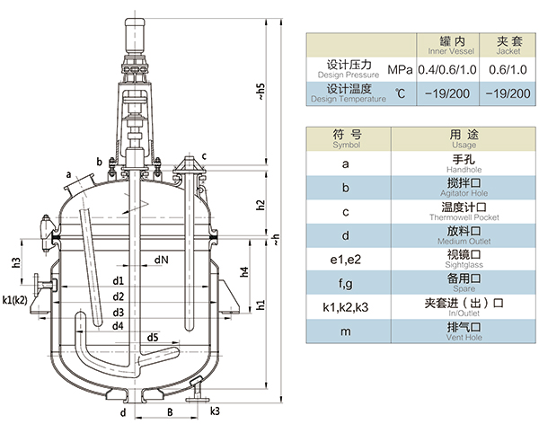 【K型搪玻璃反應(yīng)器的技術(shù)參數(shù)】: