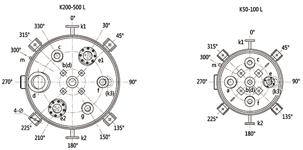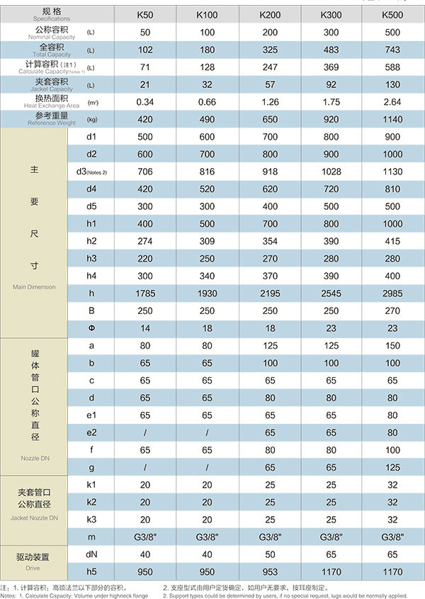 K50L-K500L開式搪玻璃反應(yīng)釜(開式搪瓷反應(yīng)釜)設(shè)計(jì)圖紙及參數(shù)如下所示: