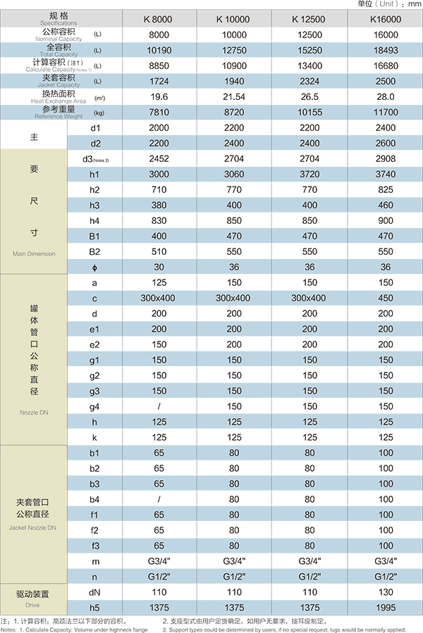 K8000L-K16000L開式搪玻璃反應(yīng)釜(開式搪瓷反應(yīng)釜)設(shè)計(jì)圖紙及參數(shù)如下所示: