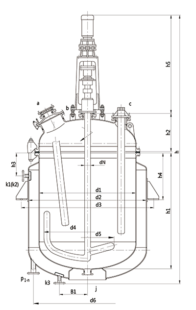 K50L-K5000L電加熱搪玻璃反應釜(電加熱搪瓷反應釜)設計圖紙及參數(shù)如下所示: