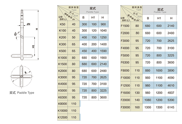 槳式搪玻璃攪拌器根據(jù)生產(chǎn)工藝的需要,可以設(shè)計(jì)為1~4擋斜槳式或平槳式攪拌器,它和物料的黏度、密度、剪切要求有關(guān)系。該類搪玻璃攪拌器適用于低黏度物料的分散、結(jié)晶操作。槳式搪玻璃攪拌器槳葉在設(shè)計(jì)和制造方面必須注意槳葉的壓扁,而且越扁剪切功效越大。