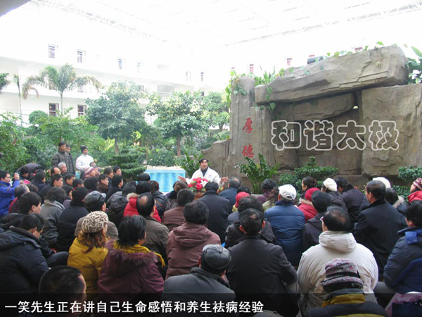 一笑先生正在講自己生命感悟和養(yǎng)生祛病經(jīng)驗