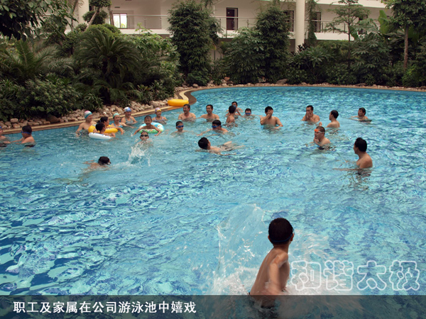 職工及家屬在公司游泳池中嬉戲
