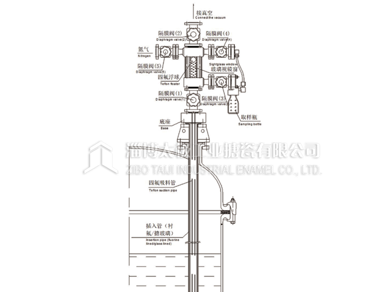 太極反應釜手動取樣系統(tǒng)(MANUAL SAMPLING SYSTEM FOR REACTORS)為防腐手動取樣裝置。取樣物料接觸各部件均采用里襯PFA、襯氟材質,達到防腐目的;四氟吸料管配套插入管(襯氟/搪玻璃材質)浸于釜內料液以下,增加其過程的穩(wěn)定性。通過抽真空將物料在系統(tǒng)中安全、快捷取樣。