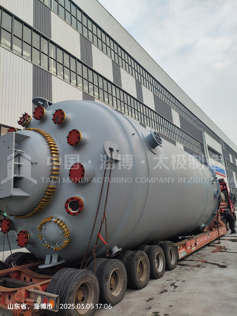3 月 5 日,太極公司 8 萬升大型搪玻璃反應釜發(fā)貨現(xiàn)場一派繁忙,設備經(jīng)嚴格質檢后整裝待發(fā)。該設備融合 36 項專利技術,采用自研高性能瓷釉,具備優(yōu)異的耐腐蝕性與穩(wěn)定性,將為客戶生產(chǎn)提供可靠保障。此次發(fā)貨彰顯了太極在大型搪玻璃設備制造領域的領先實力。